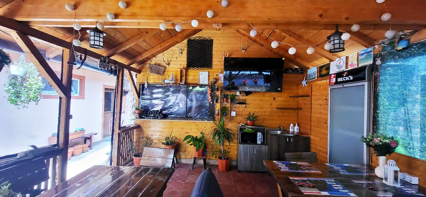 Oferim 5 camere confortabile, fiecare cu baie proprie, TV și aer condiționat, pentru un sejur relaxant. În curte te poți bucura de două foișoare perfecte pentru relaxare, o sală de mese spațioasă și o vitrină frigorifică pentru băuturi reci.